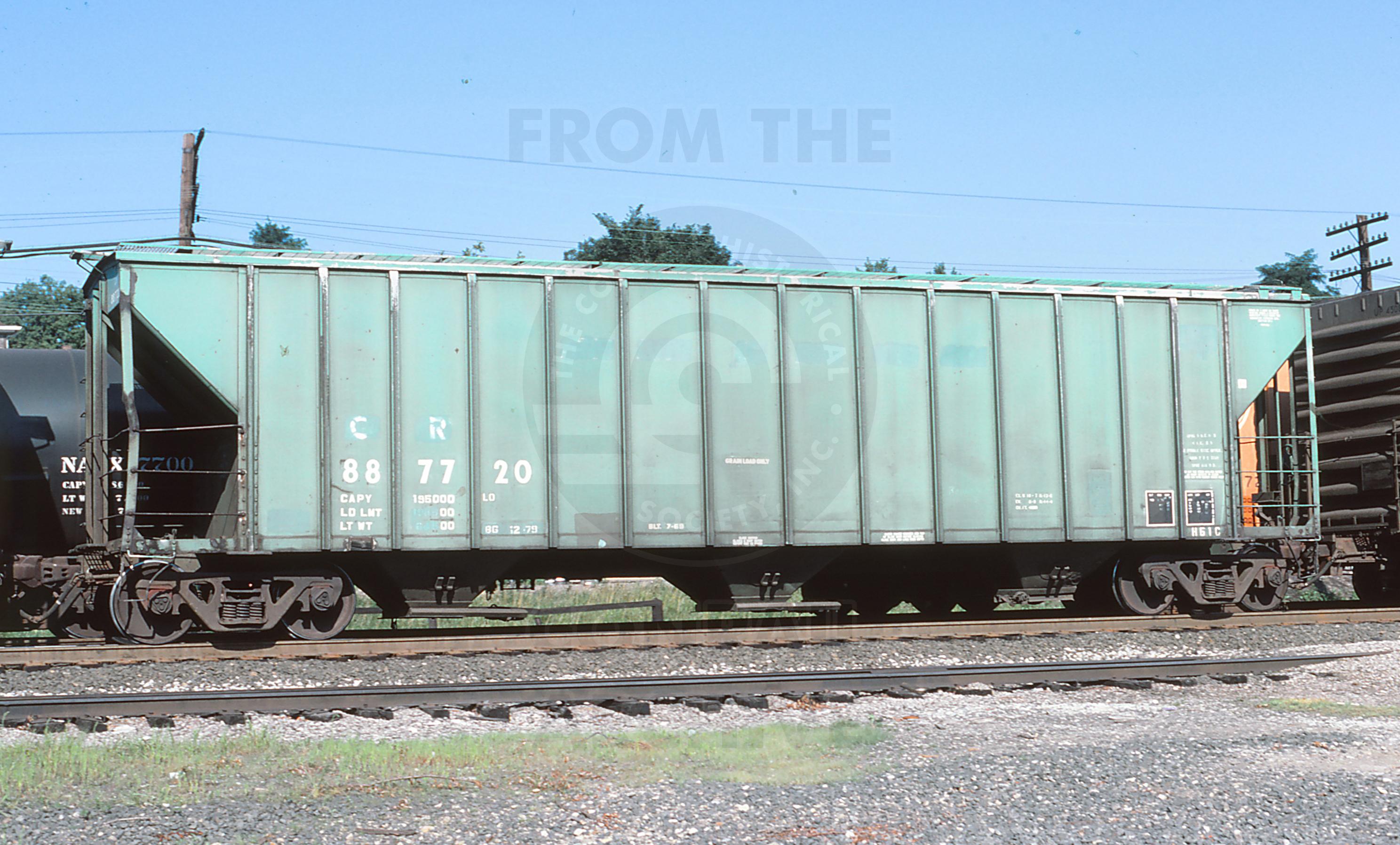 CR 887720 is seen at Conway, PA on 7/22/86. Car is ex PC 887720 and was built 7-69. Car was deleted by CR on 6/26/98 and became NYC 887720 (deleted 1/18/02) and finally ADMX 887720 (deleted 7/23/02).