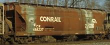 Previous Next Conrail 888237 is seen at Cove, PA, wearing what is quite possibly one of the most awesome bleed-throughs ever. Car is ex PC 888237/PRR 259990. Photo By Grant Lowry Equipment Type Class H45 Conrail Number 888237 Predecessor Paint Scheme PC PRR Collection CRHS Conrail Photo Archive Contributions