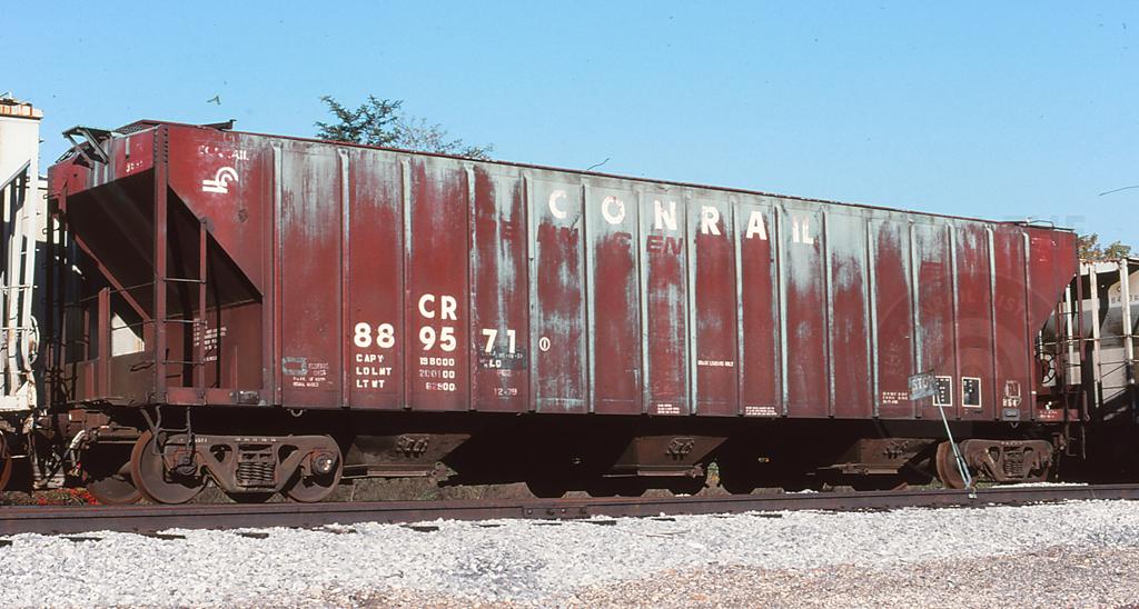 Previous Next CR 889571 is seen at Northumberland PA on 9/27/97. Car is ex PCB 889571 and was built 9-71 by P-S. Car was painted P62 12-79. Photo By Jeff Weaver Year 1997 Original Date 9/27/97 Equipment Type Class H54 Conrail Number 889571 Collection CRHS Conrail Photo Archive Contributions