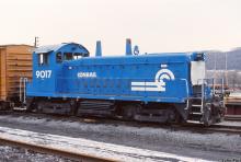 Previous Next Photo By John Pari Former EL 446/DLW 551 is seen at Lewistown, PA on 1/14/1989. This unit would later become BVRY 8202. Year 1989 Original Date 1/14/89 Location Lewistown PA Conrail Number 9017 Additional Galleries John Pari's Conrail Locomotives Collection CRHS Conrail Photo Archive Contributions
