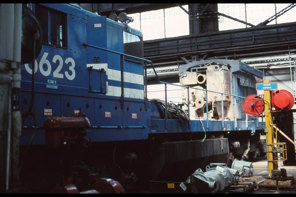 SW9, 9069, and GP15-1, 1660, lead a local train through Altoona in 1990.