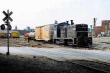 Conrail NW2 No. 9156 is flat switching at the Pershing Avenue Support Yard. This is former Chicago River & Indiana / Chicago Junction trackage. June 1980. Doug Davidson photo with permission