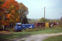 SB on the Bedford Secondary w/ NW2 No. 9158, south of Queen, PA, 10/1/82.