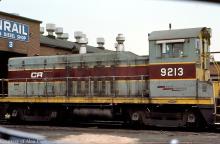 CR NW-2 9213, ex-EL 406, receives service outside the Scranton Diesel shop in April, 1977.