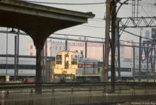 The engineer of former EL NW2 418 (CR 9225) pauses while working Hoboken terminal in August, 1977.