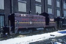NW-2 9247 sits outside the former CNJ shops at Elizabethport, NJ