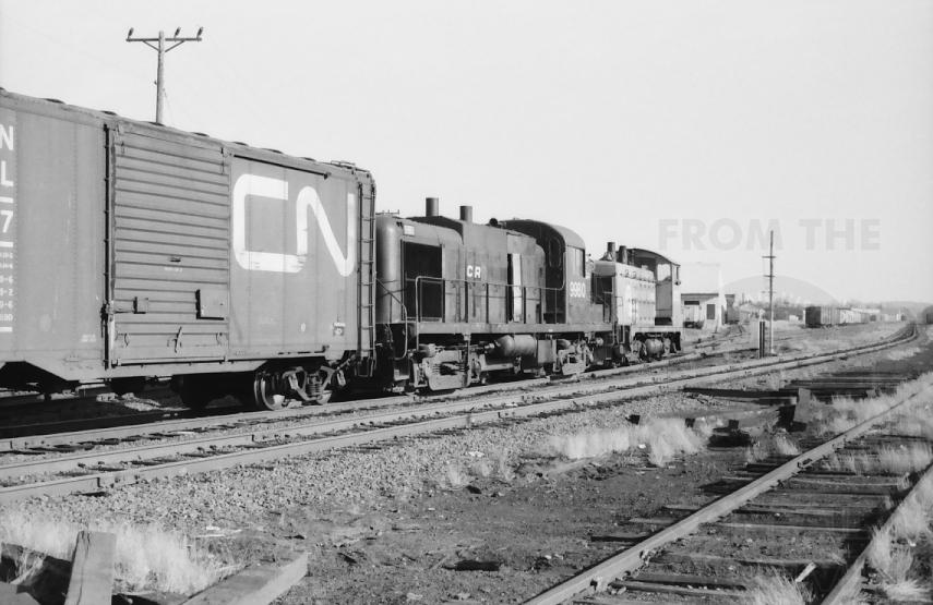 NW2 9257 and Rs3m 9980 arriving at the west end of East Hartford yard in November, 1979.