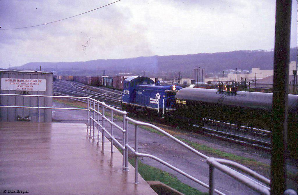 Conrail SW1200 9378 is seen switching around Lewistown Junction in 1993.