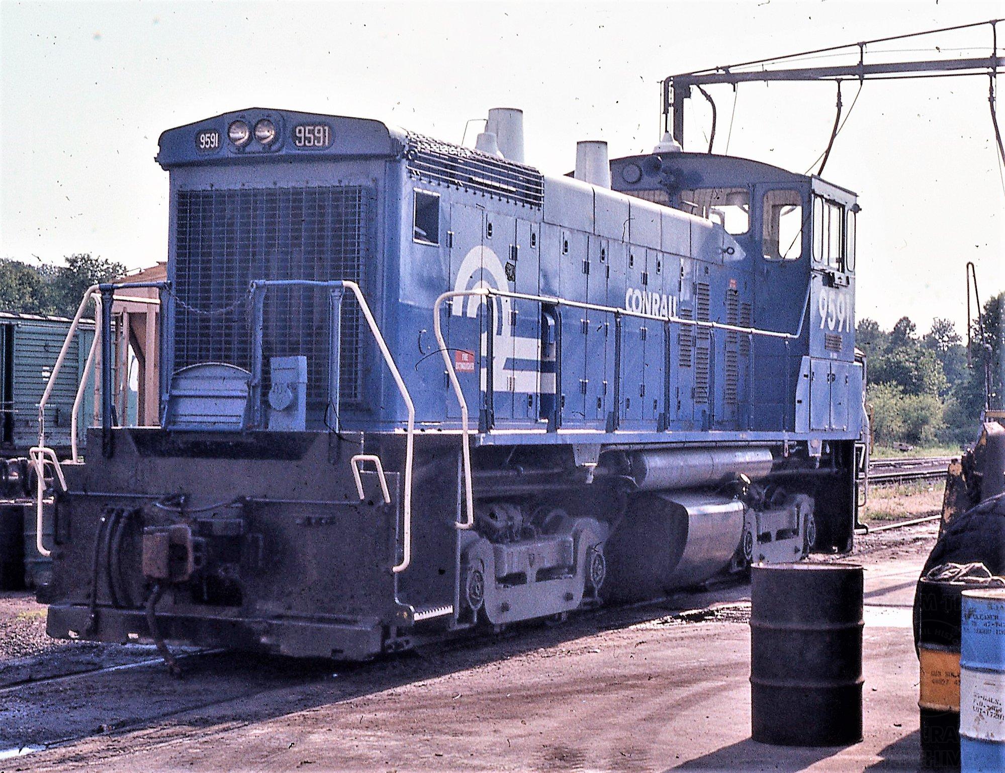Conrail SW1500 9591, Ex RDG 2752, Abrams, June '77.