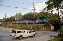 Conrail WPAB-10, the local run from Lansdale to Abrams crosses over the old Sumneytown Pike Bridge in Upper Gwynedd PA.