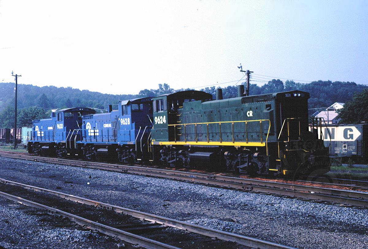 Three MP15DCs idle in the small yard at Cressona PA between assignments.