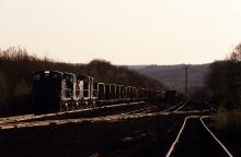 On April 30, 1987, its work complete at Locust Summit, PA, eastbound Conrail Local WHSN04 will soon depart for St. Nicholas. Enroute, a stop will be made at Gordon to work the lumber yard. Once arriving at St. Nicholas, this train will be combined with other traffic generated in the area, creating Train WHSN02, a nocturnal run to Reading. Enroute to Reading, a stop will be made at Tamaqua to pick up traffic generated there. The train returns from Reading as WHSN01, arriving back at St. Nicholas shortly after daybreak.