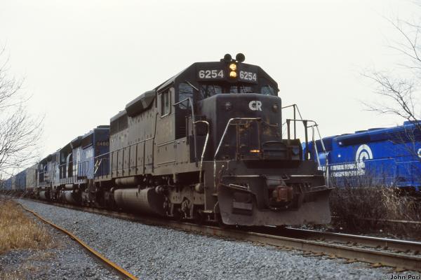 Ex-Erie/EL 1026 CR 5246 RS3 CR 9936 RS3m in deadline at Rutherford Yard.