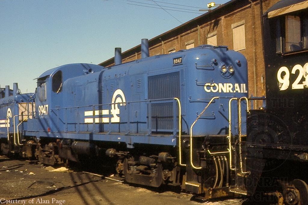 CR RS-3M 9947 rests outside the Elizabethport locomotive shops in February, 1979.