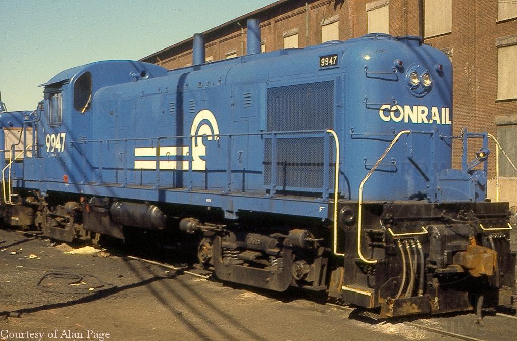 CR RS-3M 9947 rests outside the Elizabethport locomotive shops in February, 1979.