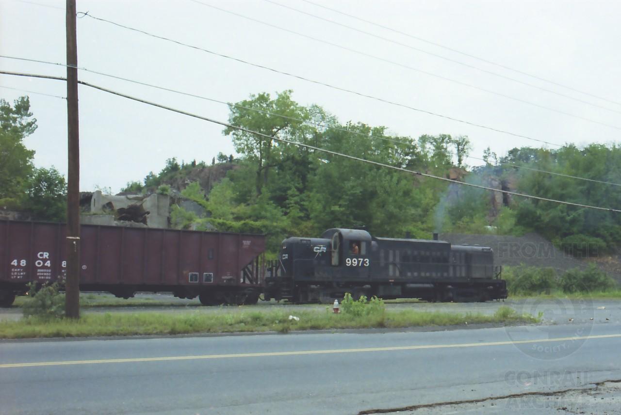 RS-3m 9973 shuffling cars at the Tilcon quarry in Cooke's Gap, which is on the New Britain/Plainville, CT. town line. This is on the old NYNH&H Highland Div. line between Hartford and Waterbury. Guilford/B&M/PAR has served this line since 1982.