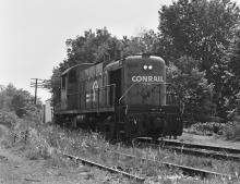 RS3m 9985 working as YNHA-3 approaching School St. crossing in East Hartford, CT. on June 4, 1981.