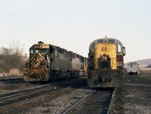 While CR 9998 sits on a siding, a Westbound D&H train arrives for a recrew.