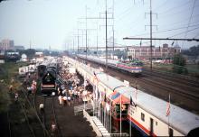 American Freedom Train on display at Handy St. Yard. New Brunswick, NJ. September 6,1978. Nice crowd of visitors walked through the display cars.
