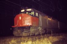 Amtrak. SDP-40F #632 with Broadway Limited in the evening ready to leave west from Harrisburg, PA. February 19, 1977