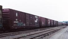 Previous Next Several CR boxes are seen in storage at Hollidaysburg, PA on 8/14/98. Photo By Jeff Weaver Year 1998 Original Date 8/14/98 Location City Hollidaysburg PA Collection CRHS Conrail Photo Archive Contributions