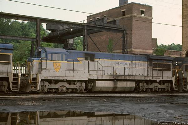D&H GP39-2 #7603, ex Reading GP39-2 #7416, GP39-2 #7612, ex Reading GP39-2 #7406 & GP39-2 #7617. Enola engine terminal on July 15, 1976. Enola provided many types of power over the years. The D&H freight would go north on the P&E later in the day.