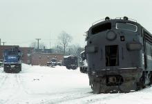 "Hanger queen" is probably the best way to describe this Penn Central F7A out behind the P1A shop at Collinwood. No number was visible, and as you can see it was being parted out with one of the windows missing. It's ran it's last mile. Another former NYC unit, U25B 2501, is in the background, and I'm sure it will be fixed and put back to work.
