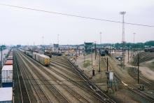 A general view of the top of the hump at Conrail's Frontier Yard, in August 1997. Doug Davidson photo with permission