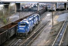 CR. GP-38 #7946 & 7944 switching the west end Enola yards on April 28, 1984