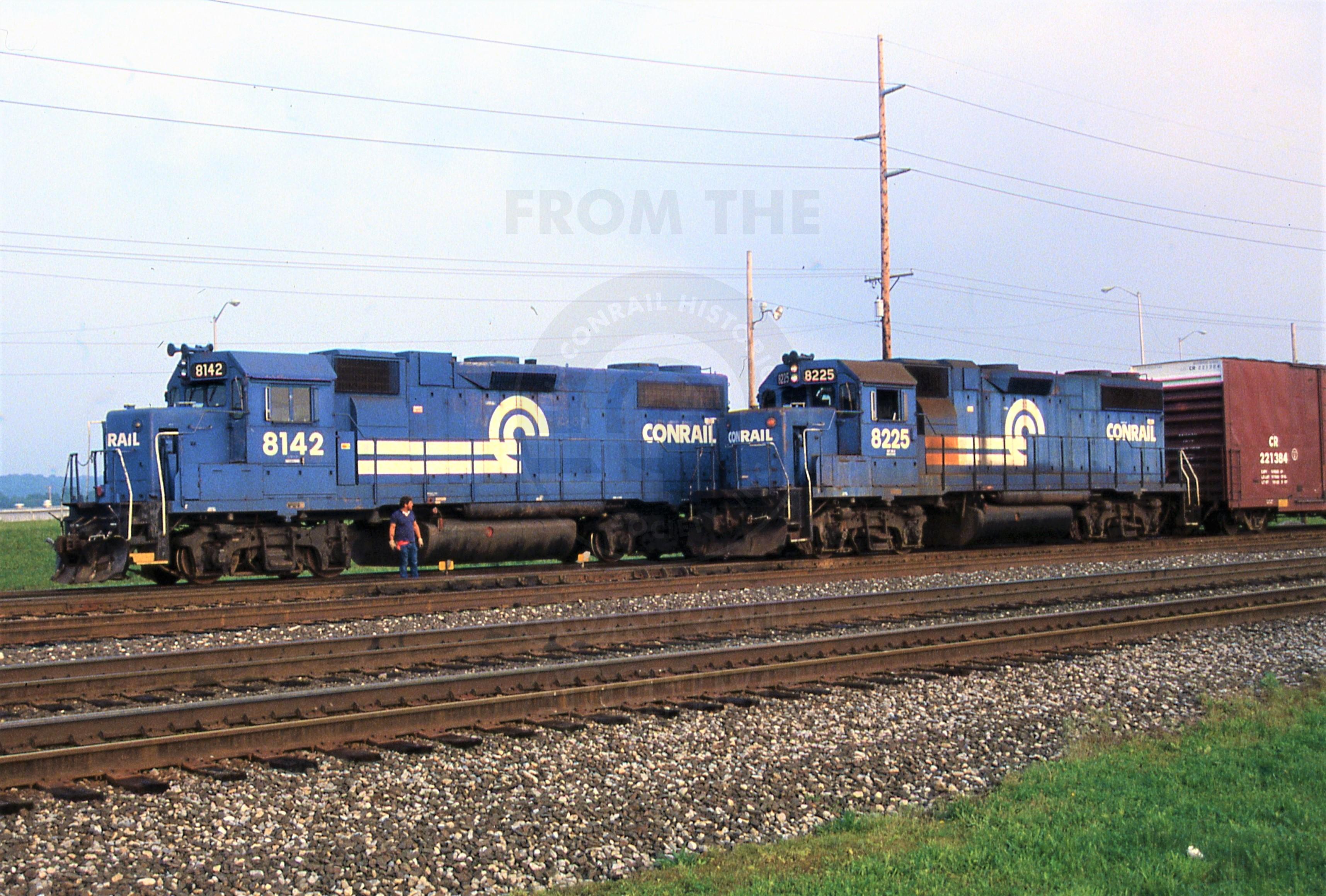 Conrail GP-38-2 #8142 & #8225 switching the yard at Dayton, OH, June 12, 1992