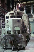 Previous Next Photo By Rich Bowes CR Altoona PA Juniata Works Locomotive in Paint Booth Year 1994 Original Date 10/1/94 Location Altoona PA Additional Galleries Rich Bowes' Conrail Photographs Collection CRHS Conrail Photo Archive Contributions
