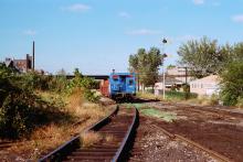A Conrail local freight punctuated with a transfer hack that looks like a class N11, heads west on the former PRR Panhandle line at 49th Street in October 1981. The train is passing beneath the GTW mains and will then cross the B&OCT Blue Island Sub. Doug Davidson photo with permission