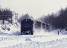 Previous Next Photo By Carl Weber MBSE continues past the Washington depot site in Washington, MA. on Jan. 24, 1987. Year 1987 Original Date 1/24/87 Location Washington MA Location Details Station Conrail Number 6565 Additional Galleries Carl Weber's ConRail in Winter Line or Locale Conrail's Boston Line Collection CRHS Conrail Photo Archive Contributions