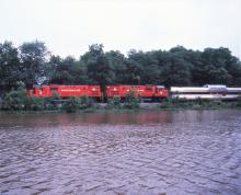 Conrail -. Morristown & Erie Railroad Alco C-425 #17 & #16 with westbound passenger equipment at New Market, NJ in September 5, 1987