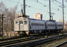 Previous Next Former PRR MP85C 257 leads a trio of Silverliner II's through Morrisville on day 2 of the 44-day March 25 to May 8, 1977 Septa City Division transit strike. Photo By Alan Page Year 1977 Location City Morrisville PA Additional Galleries Alan Page's CR: 11-1976 to 4-1977 Subject(s) Conrail Passenger Service Collection CRHS Conrail Photo Archive Contributions