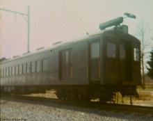 Vintage Reading Company combine MU 301 is at the tail end of a line of MU's taking the Sunday layover at Warminster station. The extra cars were needed for the Monday morning rush to Reading Terminal.