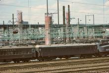 CR GG-1 4937 backs 1929-1930 vintage MU's 896, 877, 850, 845, 891, 855, 895, and 857 into Philadelphia's 30th Street Station during the 1977 Septa TWU strike.