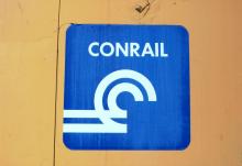 Conrail logo on TE 4107 at Huntington, MA. on April 25, 1999. Couldn't resist photographing THAT!