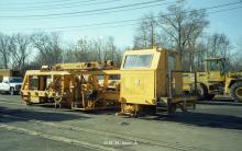 TE 4106is seen on a siding extension project in West Nyack, NY in December 1998. This wasa Tie Remover / Inserter mountedon a Plasser American production tamper platform. The tamper functions were removed during the conversion. Conrail had several of these repurposed machines and were most likely rebuilt at the System Maintenance of Way Shop in Canton Ohio.