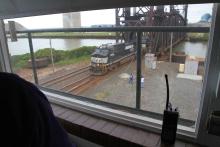 Previous Next Photo By Roger Durfee Our view out the window of Bridge 1. Year 2010 Original Date 9/26/10 Location Details Drawbridge Collection CRHS Conrail Photo Archive Contributions