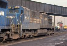 CR U30C 6581 (ex-RDG 6302) at Croxton with the yard office in the background in March, 1979.