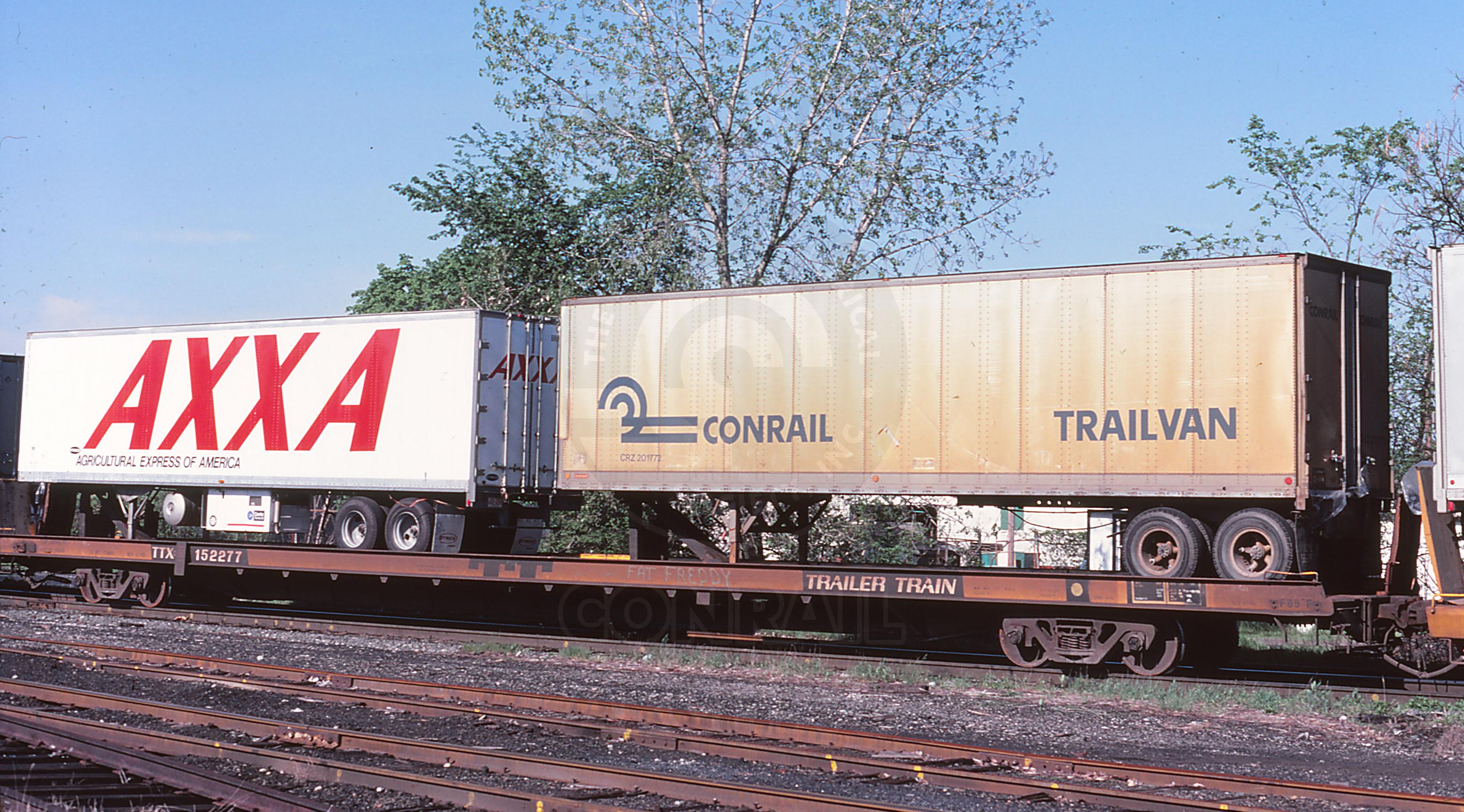 Previous Next CRZ 201772 is seen on TTX 152277 at Kingston, NY in May of 1981. Photo By Joseph R. Quinn collection of Jeff Weaver Year 1981 Original Date 5/1/81 Equipment Type Intermodal Equipment Trailers Collection CRHS Conrail Photo Archive Contributions