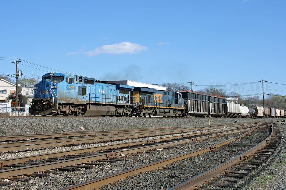 CSX 7920 (ex LMS 702) is on the point of Q-418 at Ridgefield Park, NJ 4/12/2009