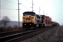Previous Next Photo By Chris Howe CSXT 9051 and fellow CSX GE lead train TV204 at the county road 7 crossing west of Bryan, OH on April 2, 1999. Chris Howe photo Year 1999 Original Date 4/2/99 Location Bryan OH Subject(s) Foreign Power on Conrail Collection CRHS Conrail Photo Archive Contributions