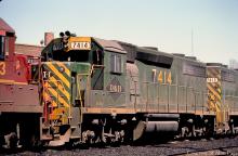 D&H ex-RDG GP-39-2 7414 waits with other sister units for assignment at the shared Bethlehem engine terminal.