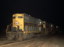 A set of 4 EL geeps have brought a turn job from Corning into Hornell on a summer night.