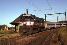 EL 3380 is seen leading a NJDOT commuter train a Denville NJ in Aug of 1978. Note CR train CS-9 to the left of the EL 3380.