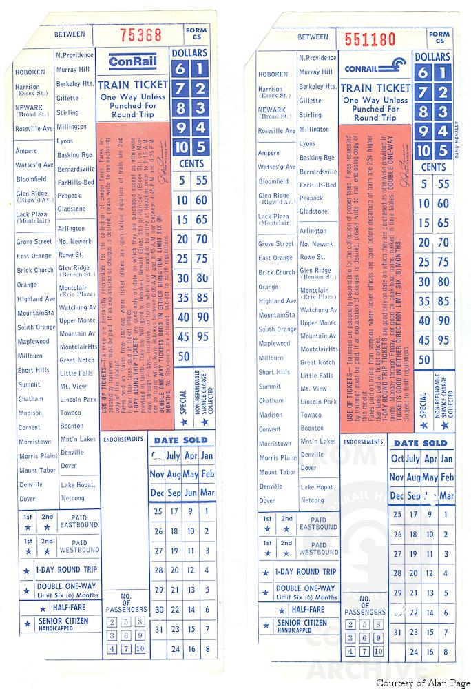 When the Erie Lackawanna transitioned to Conrail-contracted commuter operations in April, 1976, the top of the ticket receipts showed the initial "ConRail" logo, with lines above and below.