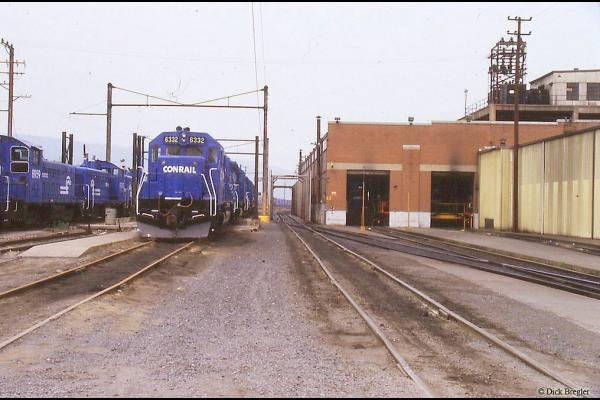 Conrail. SD-45 #6194, SD-40 #6345 with eastbound freight at Rahway, NJ on August 19, 1984