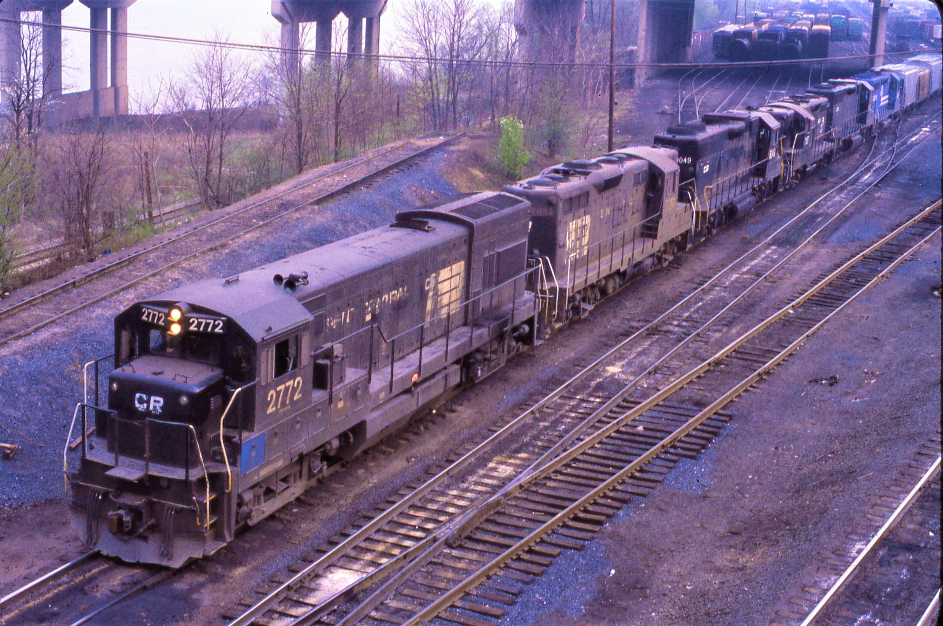 Conrail. GE # 2772 & 5 more diesels at Enola yards in PA. May 8, 1979